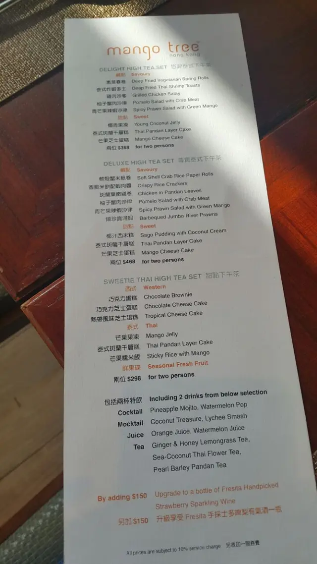 第1次試泰式high tea, 哩度真係食景同服務囉,但食物質數與價錢不成正比,差唔多500蚊2位既價錢我不如去酒店食甜品high tea吧