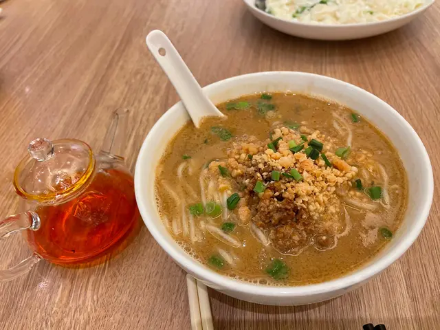 招牌擔擔麵56元,可要求辣油另上,麵質彈牙,湯底有香濃麻醬味和花生味,配料有豬肉碎、花生粒、菜脯和葱花,十分惹味。