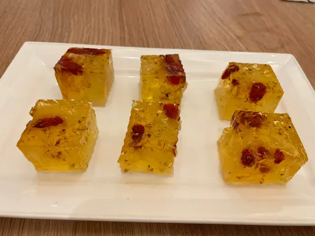 金桂花蘆薈杞子糕(六件)52元,桂花香氣四溢,蘆薈口感爽味道甜,杞子味道正常。