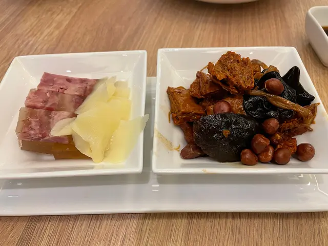 雪菜毛豆百頁93元,雪菜不會太咸,毛豆味道正常,百頁硬身口感粗糙。
