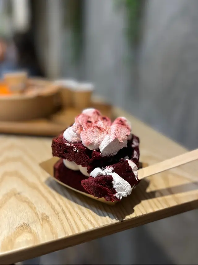 賣相制作得好吸睛👀蛋糕較一般蛋糕濕潤以及實淨 加上大量忌廉 飽肚到不得了🤣味道似布朗尼 有朱古力以及紅莓味道 甜度偏高