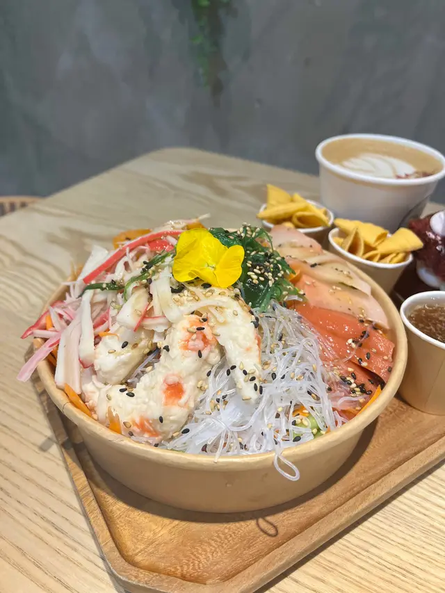 新年限定菜式🌟將日式和風油醋汁混入拼盤 味道酸酸甜甜 好開胃 拼盤入面嘅三文魚 吞拿魚等雜錦魚生以及蝦肉份量足料又新鮮😳底部有沙律以及不同蔬菜 切成條狀好掛汁 甘荀絲稍嫌份量過多 調整下整體味道會更好
