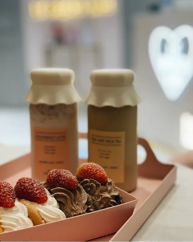 Topped with cream, strawberry and icing sugar, the 𝑺𝒕𝒓𝒂𝒘𝒃𝒆𝒓𝒓𝒚/ 𝑪𝒉𝒐𝒄𝒐 𝑶𝒎𝒆𝒍𝒆𝒕𝒕𝒆𝒔 are moist and light in texture. Reasonably priced at $168 for 12 pieces, these dainty, folded cakes are such ideal gifts for colleagues and friends! As for drinks, both 𝑺𝒕𝒓𝒂𝒘𝒃𝒆𝒓𝒓𝒚 𝑳𝒂𝒕𝒕𝒆 ($48) and 𝑬𝒂𝒓𝒍 𝑮𝒓𝒆𝒚 𝑴𝒊𝒍𝒌 𝑻𝒆𝒂 ($42) are carried in a collectible bottle💕 We like the former one as the base is smooth with bits of strawberries found. However, the latter one is just overly sweet🥲