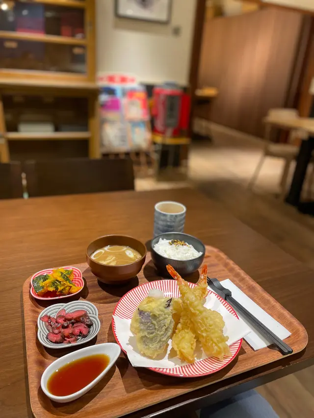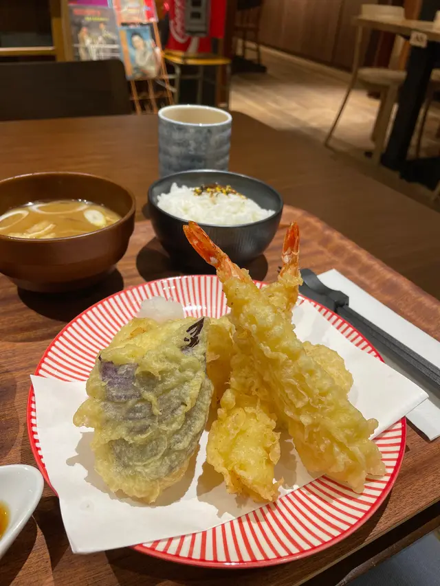 海鮮野菜天婦羅丼 (大蝦、日本南瓜、茄子、北海道帶子) HKD 168 + 熱日式玉露茶 - 天婦羅炸得唔錯幾香脆,帶子同蝦都大大隻,另外茄子同南瓜食落都新鮮美味。亦都配上日本南瓜、麵豉湯、漬物嘅配菜。