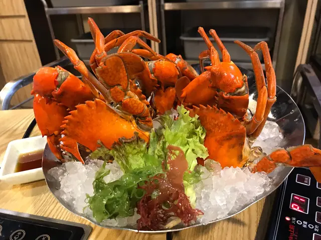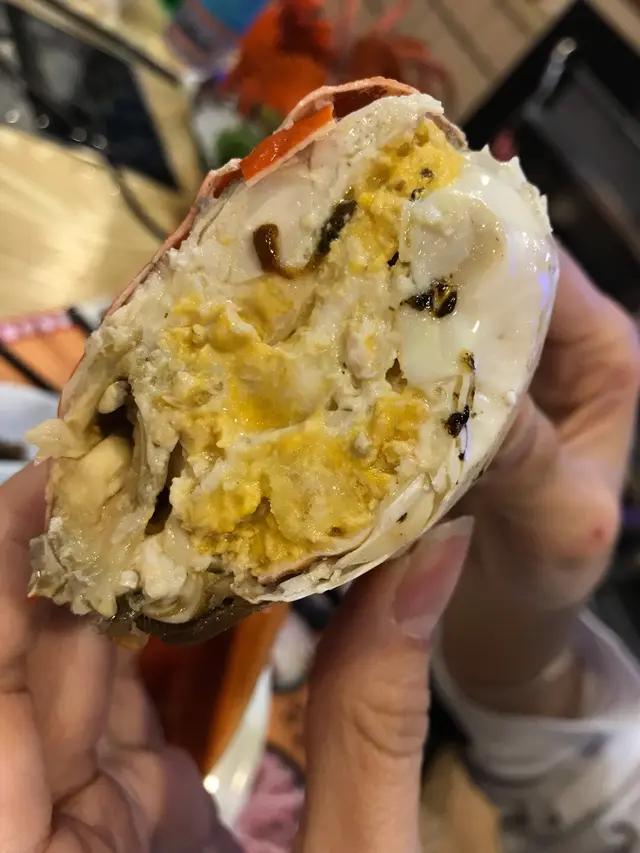 凍蟹就徒手拆來吃。我覺得每隻凍蟹都相當大隻,外表橙紅色的,相當吸引,哈哈,所以我第一時間不是取來吃,而是即刻拿出手機,拍一拍照。凍蟹裡面有好多蟹肉,白白的,好有口感,食得滋味得很。蟹膏都不少,滿滿的泥黄色蟹膏,加上蟹肉,好滋味。我們有四個人,每人有半隻。