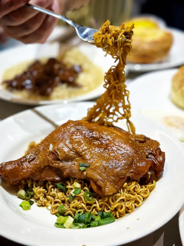 ♡ 瑞士汁雞髀撈公仔麵|煎蛋火腿|特色餐包 HKD$58