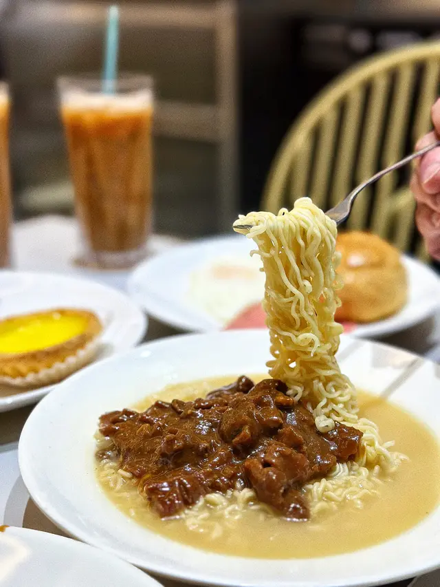 ♡ 秘製沙嗲牛肉公仔麵|煎蛋火腿|特色餐包 HKD$58