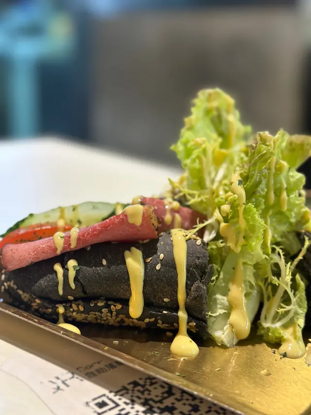 🍞煙燻黑椒燒牛肉大啡菇墨汁包三文治*