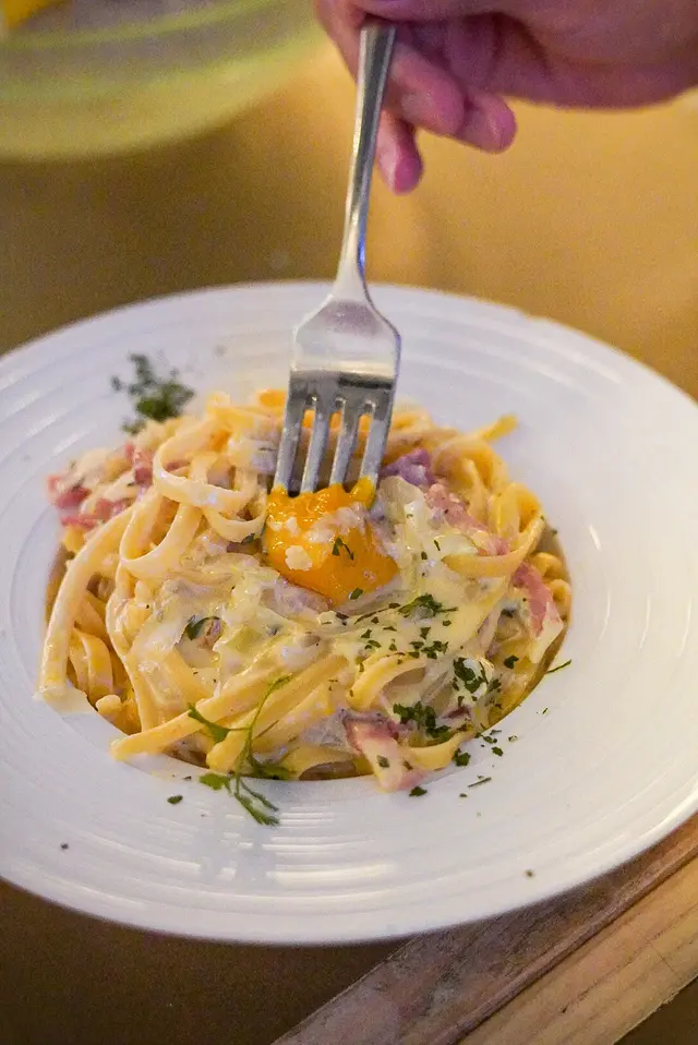 卡邦尼汁好濃忌廉味,同蛋黃撈埋一齊更香,