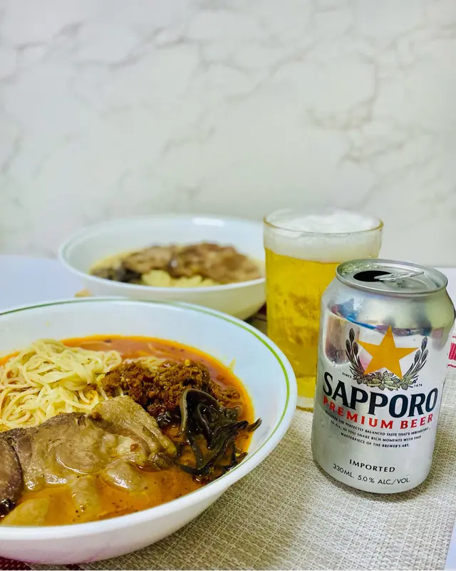 深宵睇緊波,再嚟碗熱辣辣嘅拉麵配啤酒,爽呀🤩