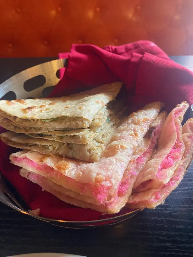 見這裡的烤餅有很多款式,試了兩款:乾果果仁蓉烤餅和椰菜花饀餅。沒想過果仁蓉烤餅是粉紅色的,頗吸晴。果仁蓉感覺有點像椰絲的,不會過甜,蘸咖喱汁一流;椰菜花饀餅亦很有驚喜,椰菜花粒粒甚有咬口,單吃也很美味。