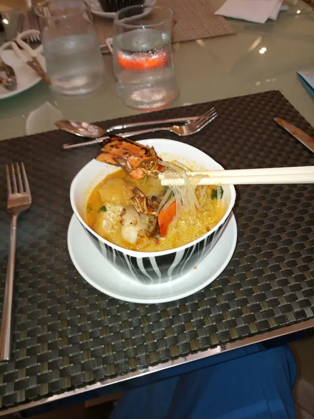 Every guest gets a bowl of freshly grilled Lobster tail Laksa noodles.