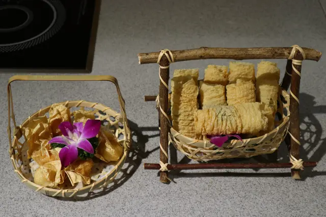 After eating a flower pot, began to eat the edge furnace cooked food, try the bell, very crisp, it is worth promoting