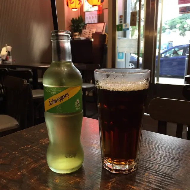 跟餐飲品點了可以任添的熱麥茶,另外點了支裝忌廉汽水,加了$8。