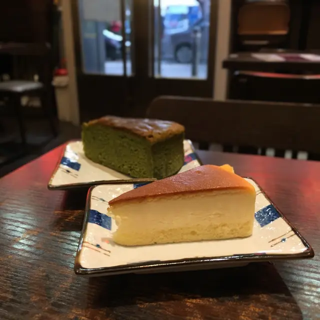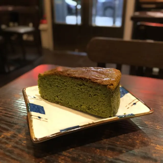 紐約風格烘烤成,抹茶味極濃的朱古力切件蛋糕。