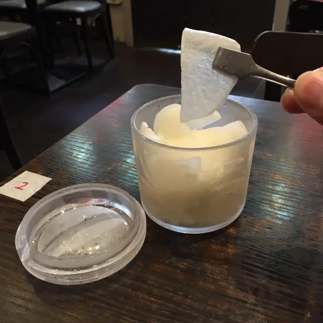 點餐後,店員立即送上酸蘿蔔。