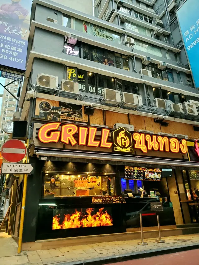 每次到蘭桂芳飲嘢都留意到和安里街口呢間泰式串燒食店,門口個火焰燈牌超級引人注目。有日晏晝喺中環做完嘢就行過去開餐食海南雞同串串