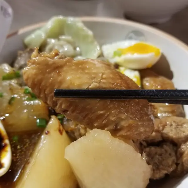 麵筋軟綿又入味,而且每一塊麵筋都吸滿滷汁,滷香風味相當迷人,讓人非常愛不釋口,愛吃麵筋的朋友一定不能錯過。秘汁雞翼鹹鹹甜甜,香氣逼人,可見這裡滷食材的厲害,一吃就欲罷不能。