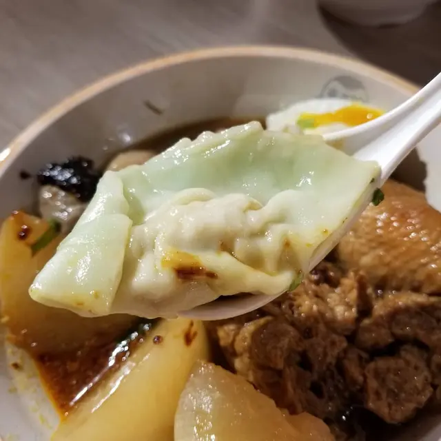 菜肉餃裡頭的青菜非常新鮮,把豬肉的香味襯托得更加清爽,餃皮厚度恰到好處,整體鮮美。菠菜麵彈牙極致,輕輕咀嚼有點回彈感,菠菜味濃厚。魚皮餃皮富彈勁,內餡部分調味不錯,口腔殘留一股魚的鮮香。