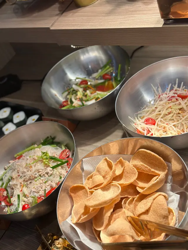 自助區:蔬菜、丸、麵、泰式粉絲、炸春卷雞翼、雪糕、泰式糕點。