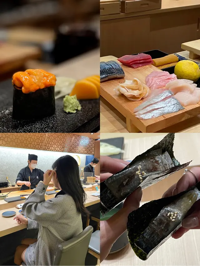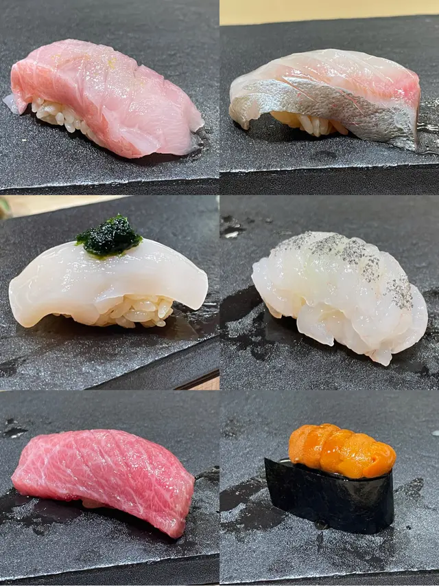 肉质都很新鲜,肉眼都能看到肉闪闪发光的哈哈哈,从海鲜到牛肉、海胆、鱼籽、什么手握都能体验一次!