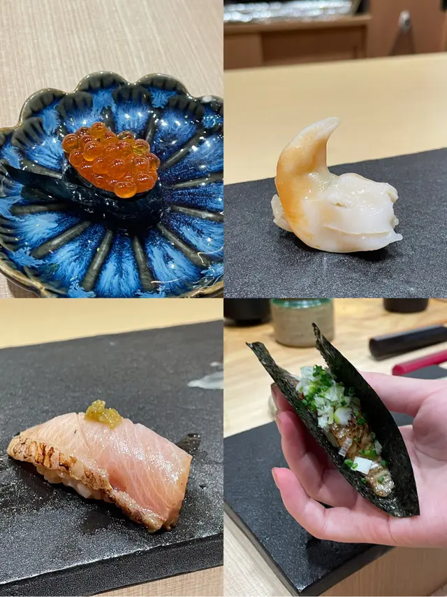 首先这家价格比较合适,适合第一次想体验的学生姐妹,我们吃的套餐是680hkd💰,有12贯!除了12贯寿司之外,还会有前菜、茶碗蒸蛋、手卷、汤和甜点。真的能吃的饱饱的🤤