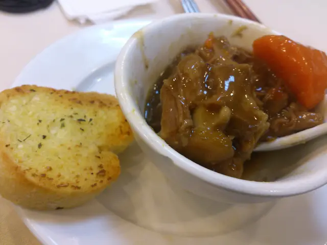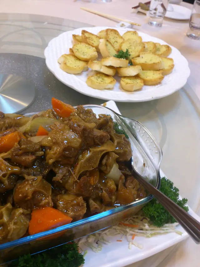 雖然是做中菜但也有一份令人期待的牛尾煲配蒜蓉包!與其說主角是牛尾不如說是那些汁和蒜蓉包,烤得十分香脆,沾上一些醬汁,實在是相當美味,不過汁略感煮得太稀,也許是給家中的老媽寵壞,她煮的那個汁杰身一些,沾麵包/拌飯吃相對也比較美味!