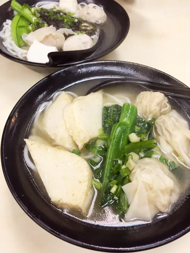 兩餸麵分別係魚片頭同雲吞,魚片頭魚肉比較淡口冇乜魚味,反而雲吞有驚喜,食得出足料大隻蝦,但湯底較清淡,同紫菜湯比差了一截。