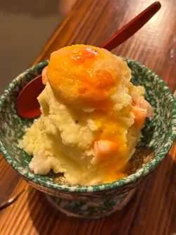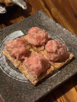 一入去唔講以為去咗日本旅行🇯🇵裝修仿如昭和時代🎏流心蝦薯仔沙律🍤($68)薯仔泥綿密,蝦肉彈牙,中間仲有隻炸咗流心蛋,好特別嘅前菜☺️酒盜炒山藥($58)平時唔食生藥嘅我竟然食到停唔到口😮山藥切得薄薄脆脆,酒盜的鹹香味滲進去,非常香囗😋炸海鰻魚骨🦴($68)一條條超脆口,又係食唔停🫣帶點鹹鹹海水味,佐酒一流👍🏻鰹魚湯煮蘿蔔🥣($45)蘿蔔吸收了鰹魚湯的甘甜,軟嫩入味😚吞拿魚鱈魚餅🐟($68)外脆內軟,吞拿魚的油脂和鱈魚交融,口感豐富又不過膩☺️海膽魷魚卷🦑($168)海膽非常鮮甜而且份量好足夠🥰 魷魚煙韌彈口,一食落去有超奢侈的滿足感。鰈魚邊壽司🍣($50/1)鰈魚邊的膠質口感一流,微微炙燒後香氣更突出🤩一舊壽司上有三塊鰈魚,層次感爆燈!雞全翼🐤($58/1)雞翼烤得皮脆肉嫩,不過有少少鹹,佐酒亦都非常適合雞肉丸🐣($32/1)彈牙多汁,口感嫰滑,內裡還帶點軟骨脆脆的口感🤪…查看更多