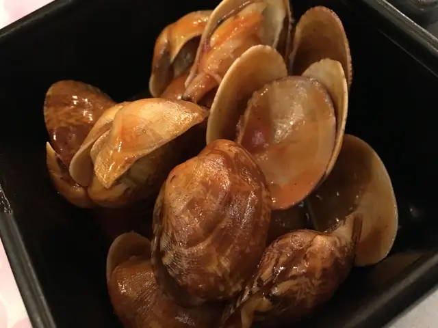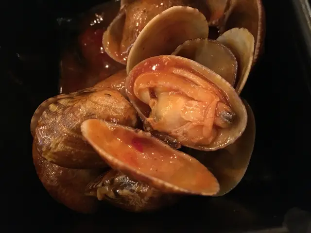 韓式炒蜆,初時不知道何為韓式,原來就是似韓式年糕的煮法。蜆肉全部都熟透並打開的,有一兩粒有少少砂,蜆肉爽口而且彈牙,而且算是中型蜆。吃下蜆肉時,微微帶辣,頗開胃的。