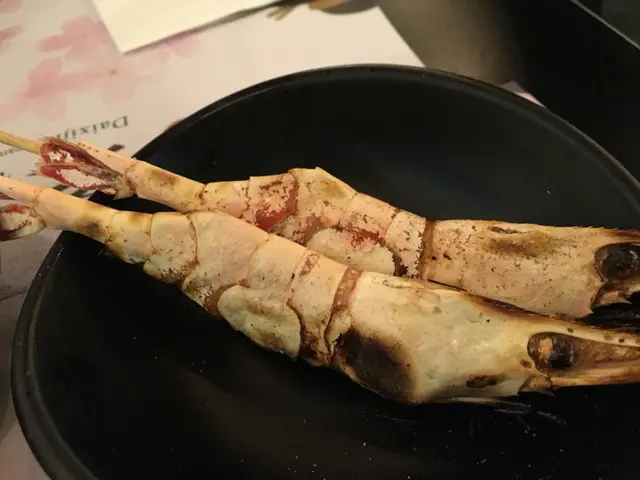 鹽燒蝦,蝦殼充滿鹽燒風味,容易除殼吃用。而蝦肉爽口夠味,如果大隻啲就更好。