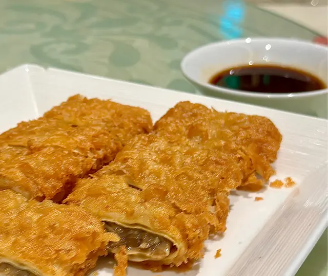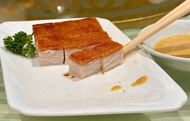 素鵝的製作精細,外皮金黃酥脆,內裡則是柔軟香料,口感豐富。