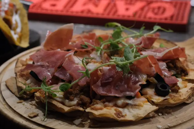 The base of the Butcher Pizza is crunchy, topped with generous amounts of minced meat and Parma ham. Every bite is packed with the flavors of the ingredients, making it a delight for meat lovers.