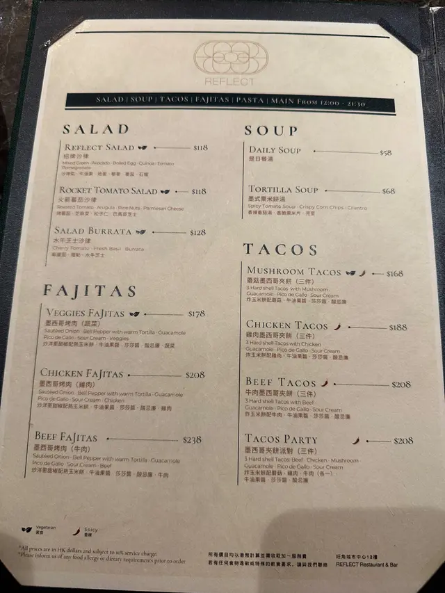 There is a Mexican fusion restaurant near Mong Kok MTR station, just a 2-minute walk away. As soon as you step in, you can see a mirror, which reflects and projects the restaurant's logo through the glass, forming an interesting correspondence with the restaurant's name "reflect".