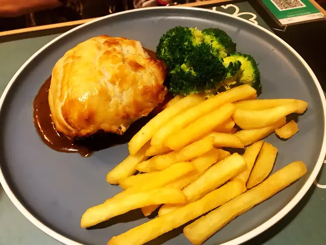 1. 威靈頓牛柳配薯菜.配黑椒汁.威靈頓牛柳酥皮鬆脆.牛柳好嫩.牛柳厚身切開呈現粉紅色.配菜薯條外脆內軟.好食.配菜還有西蘭花及小鮮茄.賣相精緻!