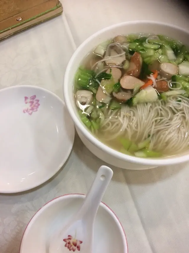 The soup came promptly and the portion was generous, plenty of noodles, cabbage and veggie sausage. The sausage was a lot smokier than I had anticipated (I can't remember if the menu listed it as smoked or not but then I was reading the English menu, not the Chinese one so there may be some difference).