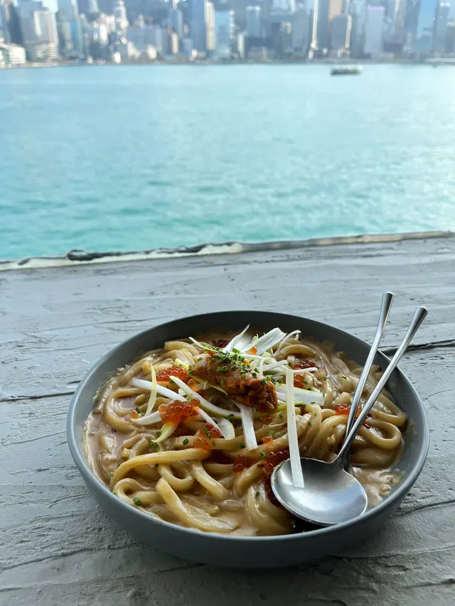 環境:入到去得三張窗邊海景枱,裝修簡約風,座位闊落。夜晚七八點去到餐牌上好多嘢食都賣晒,特別係甜品全部都冇,入去前記住喺門口睇餐牌,睇吓啲嘢食有冇賣晒先。食物👍🏻三文魚子海膽忌廉醬烏冬 $188依個值得一試味道特別,可以先食烏冬加醬汁試試,再試加三文魚子一起食又另一番風味,三文魚子同海膽份量都多,烏冬彈牙煙靭。👌🏻烤煙腩蛋黃忌廉手搓粉 $168手搓粉比較少見,所以叫咗黎試下,個味道好似淡版卡邦尼,鍾意食淡味嘅人好啱,但食開鹹既另外配午餐肉食會更好。👌🏻薯格配香辣蛋黃醬 $58反而薯格有驚喜,十分之脆口,放耐咗都脆口,加上香辣蛋黃醬好嘢味。👌🏻 荔枝烏龍茶 $48意外地荔枝同烏龍茶味道好夾,甜度正常。👎🏻炸午餐肉條配芝士醬 $68唔好食!無炸粉唔脆口但好油膩,午餐肉好鹹,掩蓋晒芝士醬味,加上芝士醬本身好淡,冇濃郁嘅芝士味,好似溝咗水。…Read More