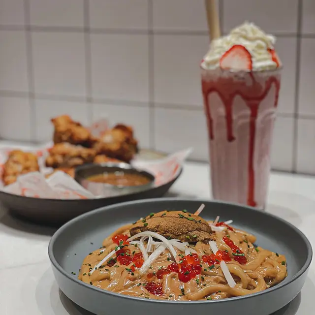 《海港城韓式Cafe 鮮甜海膽三文魚子撈烏冬》