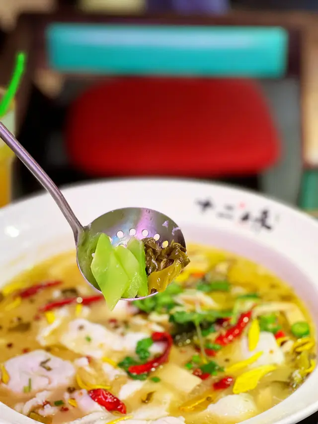被魚片驚艷完食左半碗飯,開始試真啲配料,首先當然係個湯,聽聞用左幾款酸菜、豬骨、魚骨煲,香料十足,一睇一聞就知真係「金湯」,飲落唔會太咸或太辣,又酸又香幾正