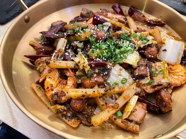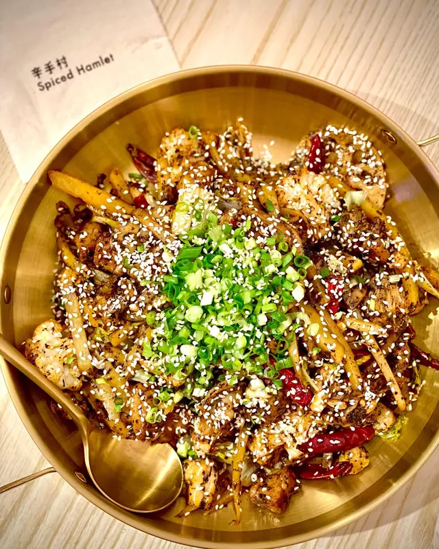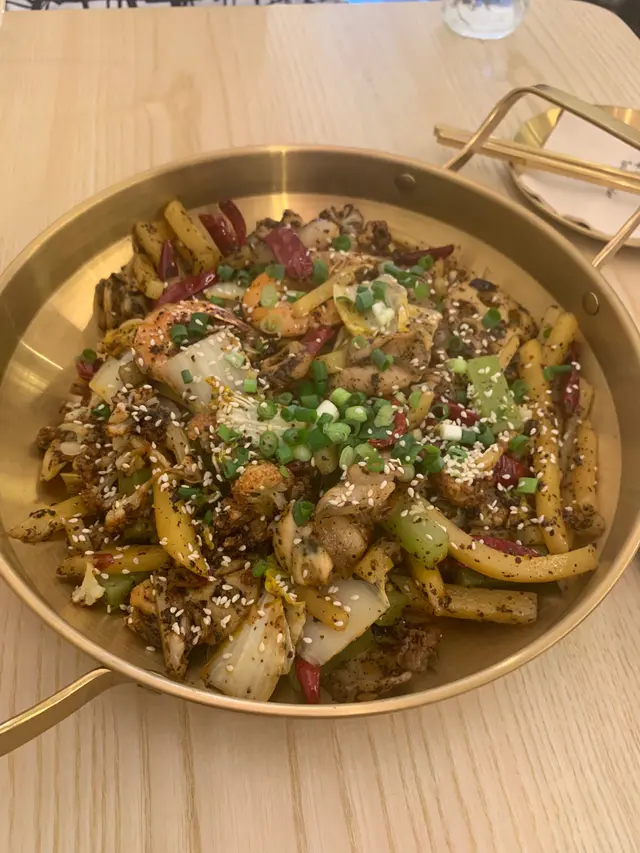 呢間嘢望落似cafe但個名又唔似,唔入去食下都唔知佢嘅葫蘆裏賣什麼藥。發現其實係食fusion川菜的,自家創作埋得意嘅新口味例如麻辣黑松露、日式壽喜燒味干鍋等,仲會喺每晚9點半調校燈光變身成一間酒吧~𖦹 估你唔到麻辣黑松露干鍋 $220 BB辣嘅干鍋以大量四川辣椒炒成,加上黑松露嘅香氣,惹味又有創意。豬頸肉爽口、魚皮餃有嚼勁、娃娃菜鮮甜、芋絲索汁,配上薯仔同蓮藕,大滿足。𖦹 川燒魷魚鬚串 $38香脆又新鮮,超惹味。𖦹 岩燒厚切牛舌心 $68呢個牛舌不得了!軟嫩多汁又富嚼勁,牛味濃郁。𖦹 日式燒鰻魚 $38魚皮燒至焦香,入口充滿魚油香氣,魚肉嫩滑。𖦹 磯燒菠蘿 $22菠蘿十分juicy,一咬已經滴曬啲汁出嚟,非常香甜。𖦹 辛燒花枝丸 $22𖦹 特調雞泡魚乾 $68薄身微脆,甜甜地帶鹹香,幾特別嘅小食。𖦹 荔枝烏龍冰茶 $34飲落好似荔枝玉露!清甜解膩,烏龍茶同荔枝味平衡得宜。𖦹 巨峰梳打 $38 清新解渴,食辣嘢飲啲冰涼嘅飲品係必須。𖦹 柚子冰粉 $28飲嘢都唔夠咁就要食埋凍冰冰嘅甜品!呢個冰粉好似我喺台灣食過嘅愛玉,滑溜得嚟有柚子嘅清香,即時降溫!…Read More