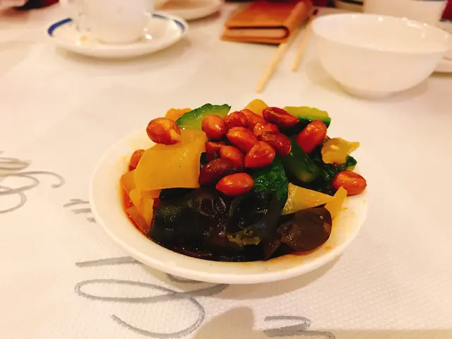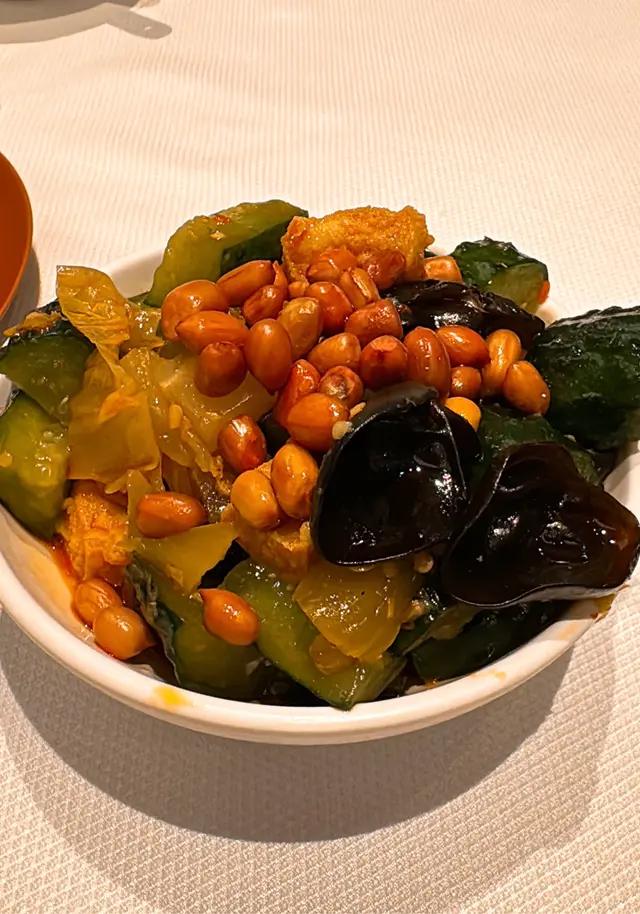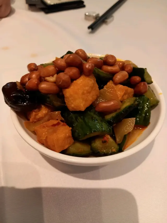 約了朋友一行三人來飲中午茶,吃些潮州食品。訂了檯從接待處拿了一張寫了檯號的字條往內廳,由於待應不足,沒有人招待你,自已找座,找到坐下等開茶。茶來上了一碟潮式前菜,份量不少,內有青瓜、豆乾、木耳,花生和鹹酸菜,配上酸酸甜甜的醬汁,味道不錯。夏天炎熱,叫了碗蠔仔肉碎粥吃,粥內有很多肉碎,蠔仔漲卜卜,又有柴魚絲,增加了鹹香味,米粒軟硬適中,整體容易吃。潮州粉果,一籠四隻,餡料足,餃皮有黏性易咬開。煎蠔烙,一大塊蛋餅內包含軟軟滑滑的蠔肉,有蛋香蔥香,邊界位置煎得焦香。牛肉腸粉,一碟三條,面層油油光光,內層牛肉滿滿,口感既滑又充實。香脆魷魚鬚,這個小食用了一個網架盛載,內放了吸油紙,賣相西化。魷魚上的粉漿不多,入口未夠脆口,略為偏向軟身,因為口感不佳,這個小吃沒有吃光。幾款食品中除了魷魚鬚外,其他都滿意,前菜更是整碟吃光光。…查看更多