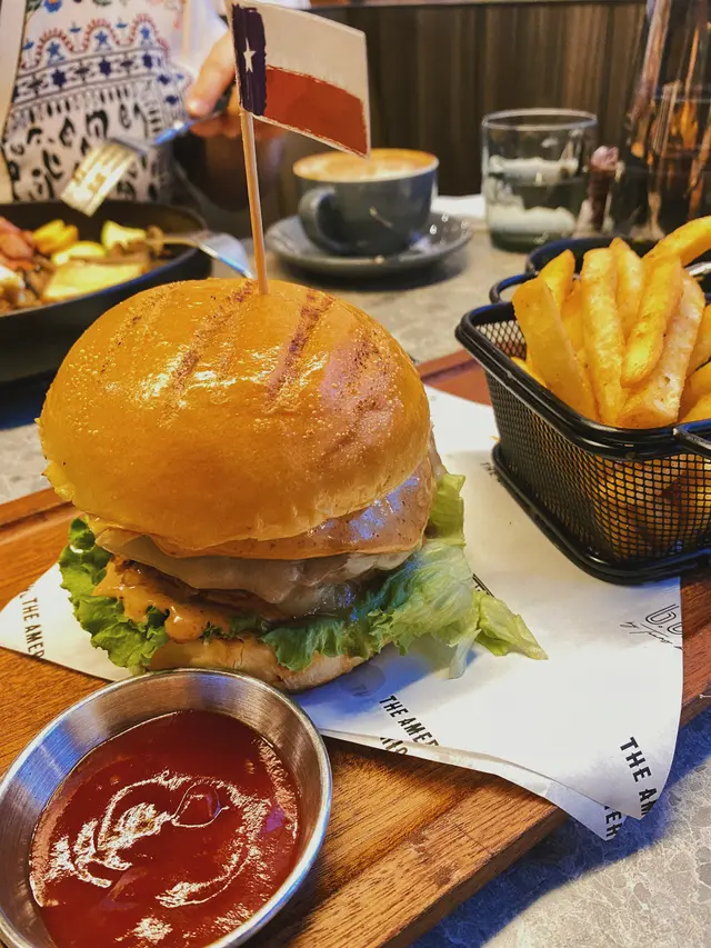 唔太肚餓食西餐有咩食物好揀?原本想試個三文魚Egg Benedict,可惜夜晚冇得食,咁就當然係食我最愛嘅甜品啦😆 餐廳裝修走型格路線,位置亦幾寬敞,不失為一個打卡勝地。餐廳一邊係商場落地玻璃窗,自然光照入餐廳,氣氛感覺唔錯。服務態度就普普通通,職員面上冇乜表情,感覺好cool😂 ✨卡爾谷煙燻車打牛肉漢堡 $88牛肉漢堡幾厚身,咬落肉味濃郁又夠juicy,配埋香燶車打芝士味道更香口。另配蕃茄同生菜中和返,食肉都唔會感覺太膩。薯條新鮮炸起,夠外脆內軟,唔點茄汁原味更好味😆✨奶蓋楓糖核果梳乎厘班戟 $118梳乎厘班戟鬆軟,蛋味香濃🥚 奶蓋香滑濃郁,唔會好膩,再加埋脆口核桃,口感豐富有層次,甜中帶點點鹹,啖啖都可以嚐滿多款味道😋✨Cold Latte $44奶味香濃幼滑,冇蓋過咖啡味,兩者比例剛剛好,味道濃郁👍🏻✨Hawaii Beach $48味道正常,不過不失,甜酸度剛剛好。🔍整體感覺:餐廳坐得幾舒適,格調都唔錯,食物擺盤幾靚,味道亦都唔錯,值得一試,亦適合去打卡📸…Read More