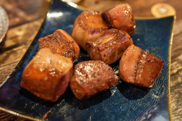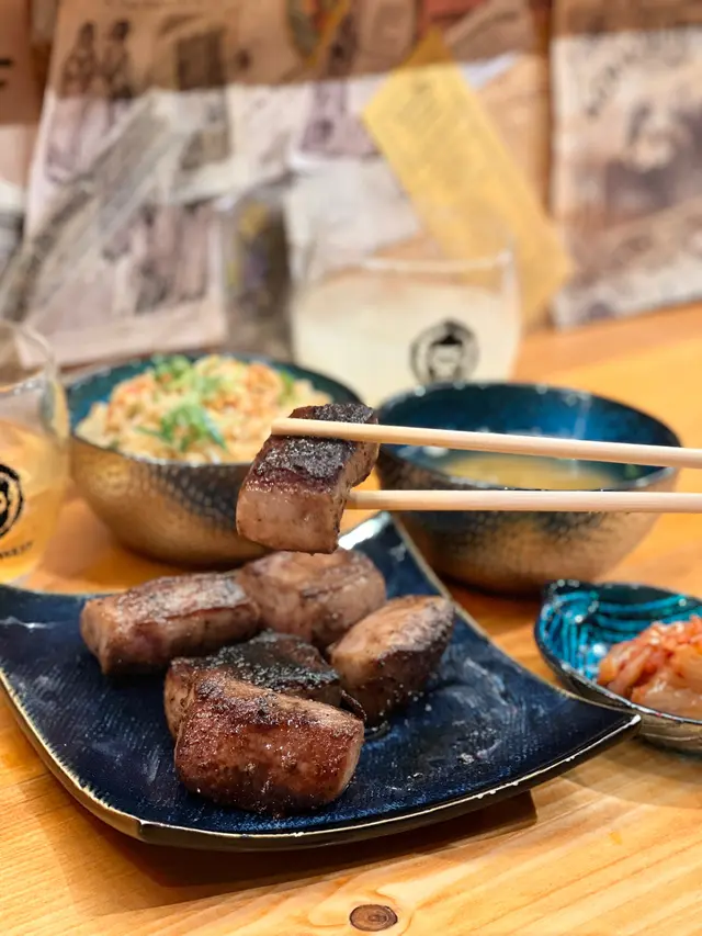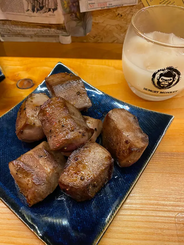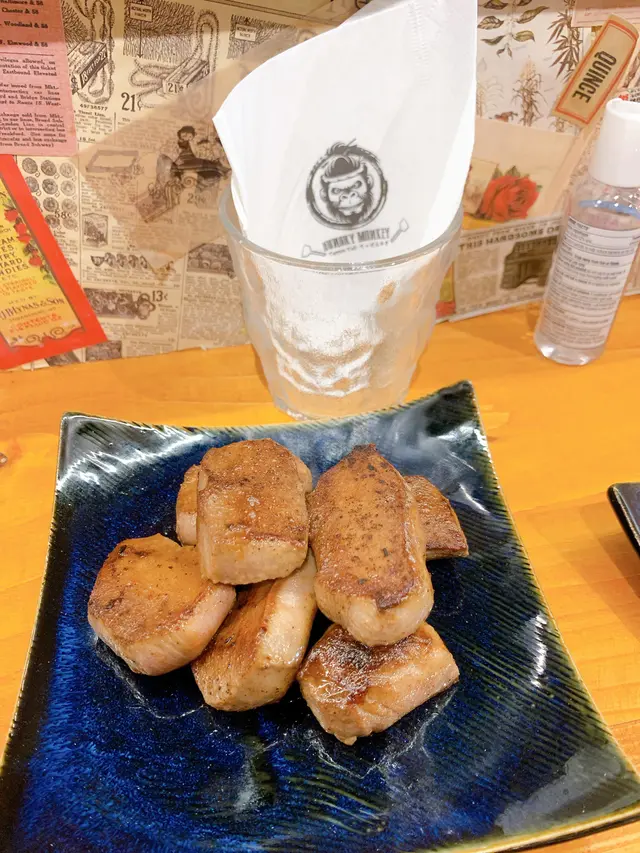 話說住在荃灣西的街坊,應該知道海之戀商場內盡是特色餐廳林立,所以人流相對較多。某天朋友建議我去這間Hungry Monkey日式鐵板燒光顧,看到餐廳內的香味嘴饞到不得了。餐廳內有個戴日本綁式頭巾的猩猩logo招牌燈,反映餐廳很用心設計,令人印象深刻。座位設計風格偏日式拉面/壽司店,顧客面向廚房可以看到廚師料理,座位很舒適寬敞。我和朋友點了鐡板定食套餐,套餐包括沙律、漬物、麵鼓湯等等。蒜子蕃茄野菜沙律非常開胃,味道不錯。作為開胃菜之一的磯煮鮑魚使用了日式醬油同和昆布慢火炆煮,保持了鮑魚肉質鮮嫩,而且醬汁鮮甜香濃,作為開胃菜真合適合夏天吃,令人想再來一客。金菇牛肉卷真的值得一試,甜鹹甜鹹醬汁夾雜牛肉的香味,外表有點脆口,內裡的金菇吸收牛肉的肉汁柔軟又滋味,真的很驚喜~五花豚肉燒價錢合理,豚肉燒得外表脆卜卜,和醬汁非常配合甜鹹甜鹹,油香四溢。芝士翠玉瓜真心會推介,每件翠玉瓜蓋上很大塊芝士,然後把芝士烤到半溶化狀態下,芝士味焦香濃郁,有微微拉絲的效果,非常美味。章魚御好燒份量也挺多的,餐廳也很大方舖滿了鰹魚薄片,餅底每一口都有很多粒的章魚粒,配上甜甜的大阪燒醬,滿足感100分。厚燒牛舌片牛肉味濃郁又柔軟,簡單的調味令食材的味道充份表現,彈牙啖啖都是肉感。炒飯火候足夠,有鑊氣。梅子醋綠茶非常配合這頓飯,作為消滯飲品淡淡的梅子香味令人一試難忘。啤酒口感清爽,酒花不算太多,味道不錯。餐廳整體質素不錯,出菜速度非常快,基本還沒吃完一道菜,下一道菜已預備好,速度之快令人讚賞。