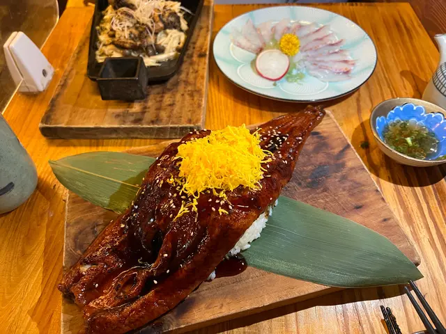 每次來這間懷舊傳統裝潢的居酒屋,總讓我不其然又點鰻魚飯呢~ 食物依然好味,我的口味仍然沒有變。枝豆 $42烚煮加鹽的枝豆,色澤翠綠,味道清甜。味淋魚干 $68魚干甜美口感鬆軟,沾上沙律醬美味。香炸日本池魚仔 $58池魚仔香脆惹味,可以過足口癮。燒日本播磨蠔 $110三款口味可選擇,有雙色芝士、煙肉櫻花蝦和辣蒜,各有特色。配料落足佈滿蠔身,蠔肉保持鮮嫩,食足三隻先夠喉。明太子醬燒玉子串 $58最愛這裡的玉子厚身,口感軟彈,配上咸香美味的明太子醬一絕。原條成田醬炭火燒鰻魚飯 $158鰻魚原條上大條兼厚肉,望見都好滿足,魚肉肥美無骨口感軟腍,加上鰻魚醬汁甚為美味。…查看更多