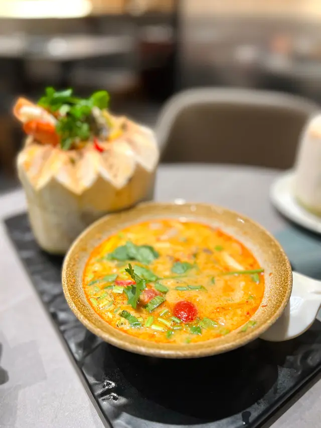 職員見你整污糟嘢,即刻俾濕紙巾嚟抹,服務好好 🥰💚 泰北椰汁蟹肉🦀伴青瓜 係多蟹肉嘅,但椰汁🥥比較甜d💚 原盅椰青大頭蝦冬陰功,份量都好多、好足料!有幾隻大蝦🦐, 冬陰功湯椰子味🥥好濃,同朋友兩個人每人都有兩碗幾~🥣👍🏻💚 咖喱海鮮咖喱甜甜地既,有蝦、魷魚同青口🐚,都幾豐富!😋唔知係咪自己係叫三碟餸都有啲椰汁/咖喱,呢幾碟餸菜都偏少少甜,下次要再去試吓其他餸菜先☺️🏠 泰斗 (TKO Gateway西翼) 📍將軍澳常寧路2號TKO Gateway西翼1樓W114號舖☎️ 37020017…Read More
