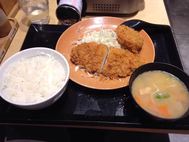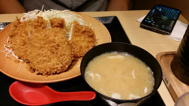 黃金餅方面,黃金餅十分厚身,應該混合了豬肉碎,洋蔥等食材,吃下去時外皮都是十分香脆,而內裏十分Juicy,味道不錯!麵豉湯方面,麵豉湯內有豬肉片和雜菜,但味道一般。價錢方面,其實以中午價錢來說,是比較昂貴的。吉列炸蝦雞扒定食$69,吉列豬扒黃金餅定食$75,麵豉湯免費,飲品要另加$8,所以沒叫,另有加一服務費,2人總共$158。總結來說,由於全部都是炸物的關係,第一啖吃時會覺得十分美味,但繼續不斷吃時會愈食愈Dry和油膩,會漸漸覺得味道其實一般…其實不如想像中這麽美味…而且價錢太貴了,便宜一點會好點