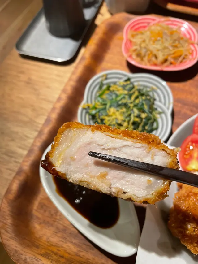 小朋友測完驗啦,即刻約朋友食晚餐。朋友係觀塘返工,佢介紹呢間餐廳。一入餐廳,感覺好舒服,比較開陽,檯與檯之間唔會好擠迫,係日本風格,中間仲有一個讀書時好怕嘅跳馬,好耐冇見過啦😅我哋叫咗兩個定食,一個和風厚切吉列北海道豚肉眼扒定食,一個溫泉玉子半燒M5和牛前胸丼。吉列豚肉好鬆脆,入邊仲係好Juicy,炸粉唔會太厚,做得好好。另外仲有沙律同帶子裙邊做前菜,感覺清新,我就食完豬扒,再食椰菜絲,感覺冇咁漏。朋友食和牛,都好腍滑,用京蔥炒香,好正。其實最想偷食佢隻雞蛋,半生熟溫泉蛋,真係想一啖食咗佢。食完仲可以坐多一陣傾吓偈,餐廳比較寬敞,所以職員都冇趕我地走。喺一個消閑,同朋友傾偈嘅好地方。😋Yummy Yummy: 9/10😋…Read More