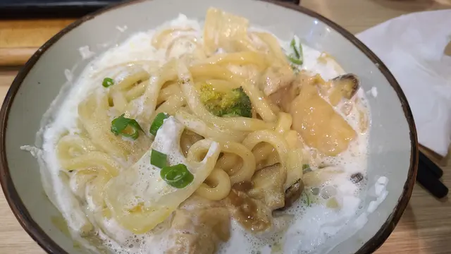 ,厚厚的白滑忌廉,煙韌彈牙的烏冬😋,香滑美味👍🏻。 吉列牛定食🍱~ 有幾款開胃前菜~沙律菜🥗、蕃茄仔🍅和麻醬豆腐🧈, 還有麵豉湯🥣和飯🍚。 餐廳提供鐵板火爐, 外脆內嫩的口感,配上沙律醬和芥末, 提升牛肉的味道。 蜂蜜菊花茶🍹~ 清熱又滋潤的蜂蜜菊花茶, 熱飲都不錯。 紫薯latte🥤~ 紫色賣相特別迷人,面層幼滑的忌廉, 襯托香濃的紫薯味, 甜度剛好。每次到餐廳必點吉列牛和忌廉烏冬, 水準依然好☺️👍🏻。…Read More