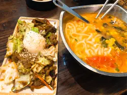 我嗌左泡菜燒牛扒拌飯,分量好足,泡菜酸酸辣辣,好開胃;牛扒又大塊量又多,牛肉味重,新鮮;牛扒下鋪滿海帶,醬燒汁,撈埋白飯,好好味。