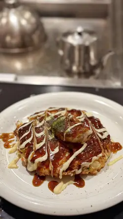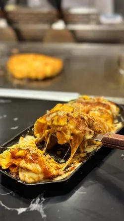 啟德The Twins一期新開咗間日式大阪燒同鐵板燒餐廳😍主打地道廣島式大阪燒,配上鐵板燒表演,環境走現代日式風格,好啱家庭或朋友聚餐~師傅席前煎煮,煙霧繚繞,非常吸引,迅速成為啟德區熱門食店!二人前 ($558)前菜① 芝士泡菜豚平燒豚肉片層疊韓式泡菜與融化芝士,形成三重奏嘅滋味!芝士拉絲好誘人🤩泡菜微辣好開胃,豚肉煎得香氣四溢,入口好滿足!② 鐵板章魚小丸子